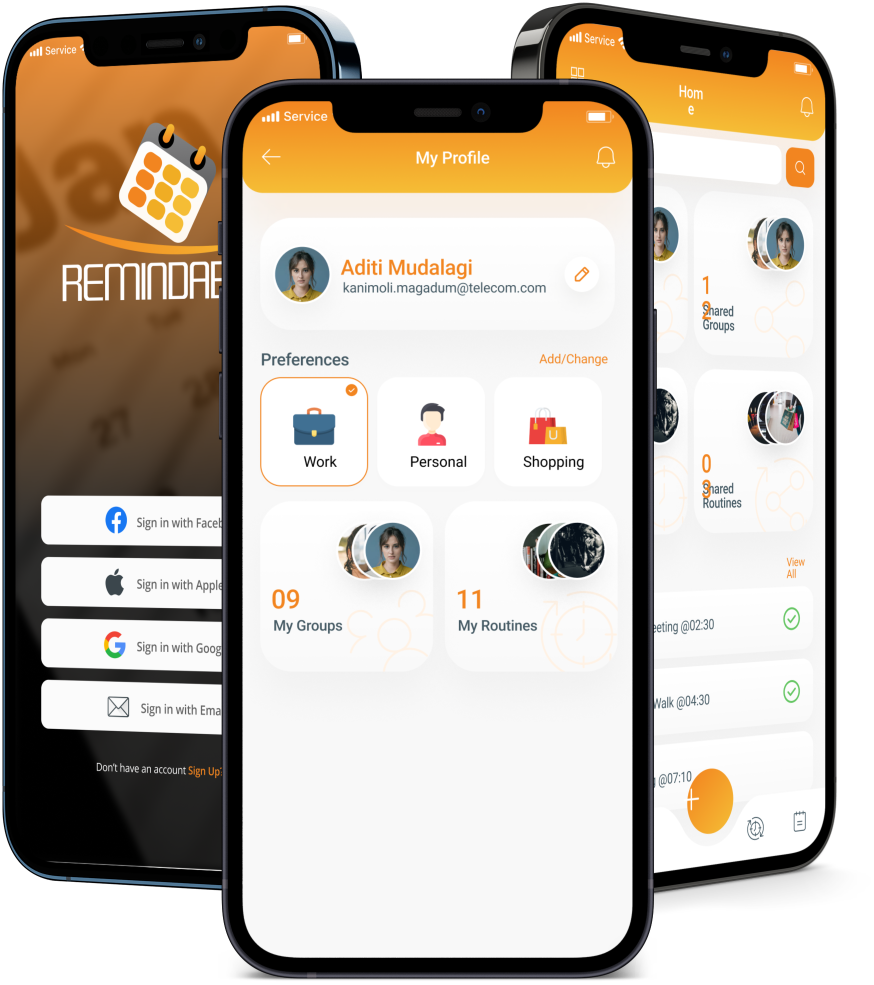 Set a reminder for your Car Registration, your mortgage payment, and taking your daily aspirin. Imagine, in Remindably, setting a reminder to get your oil changed in your Family Group, playing Golf once a month in your Golf-Buddy group, or having coffee every Thursday morning with your Mom’s group. At Remindably, we know that our lives are not simple and scheduling is cumbersome. We aim to take this burden from you and let you spend your time enjoying life, not managing it.